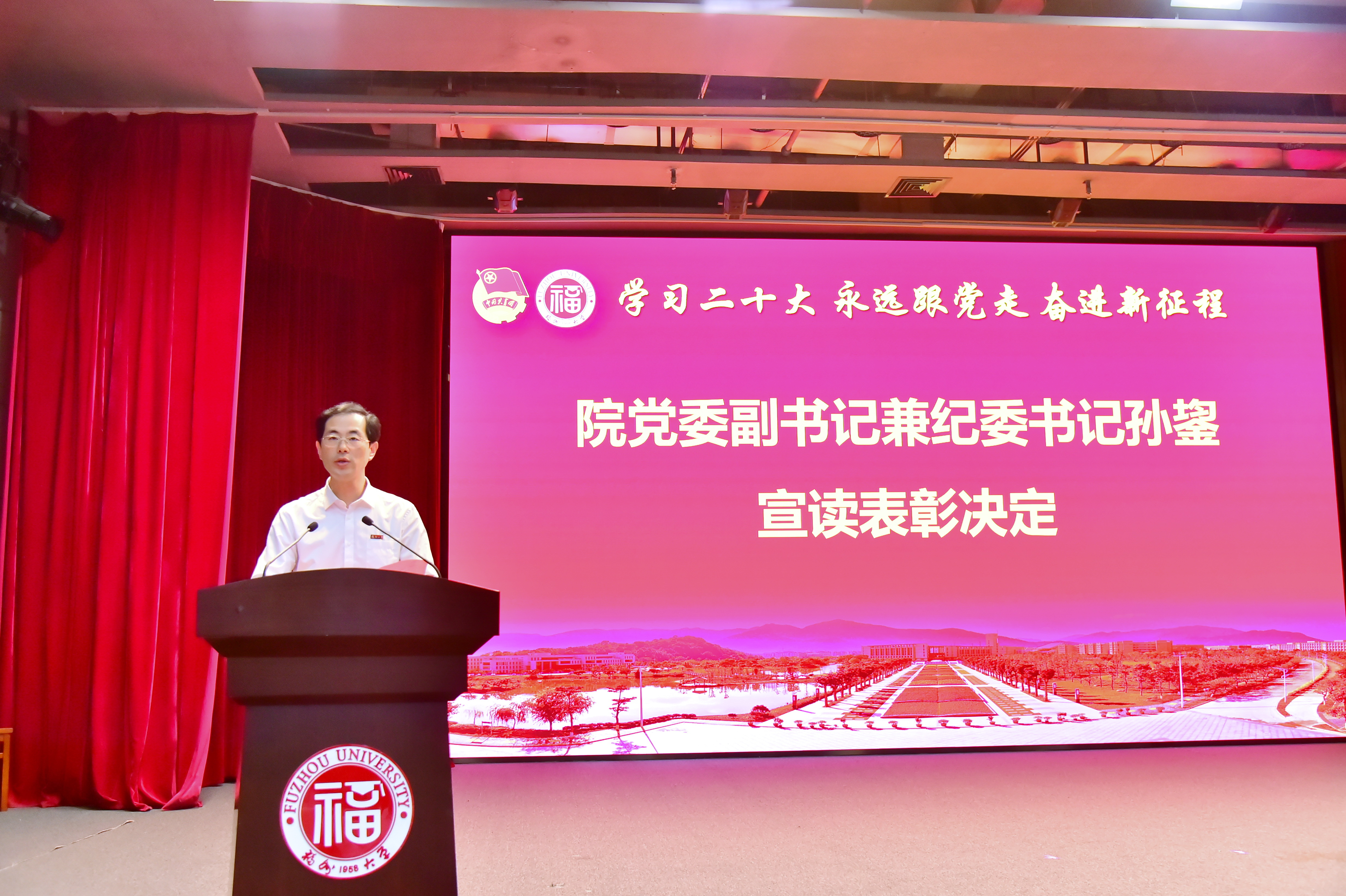 大会在全体成员奏唱国歌中拉开序幕。学院党委副书记兼纪委书记孙鋆代表学院党委宣读表彰决定并对获奖集体与个人表示祝贺。