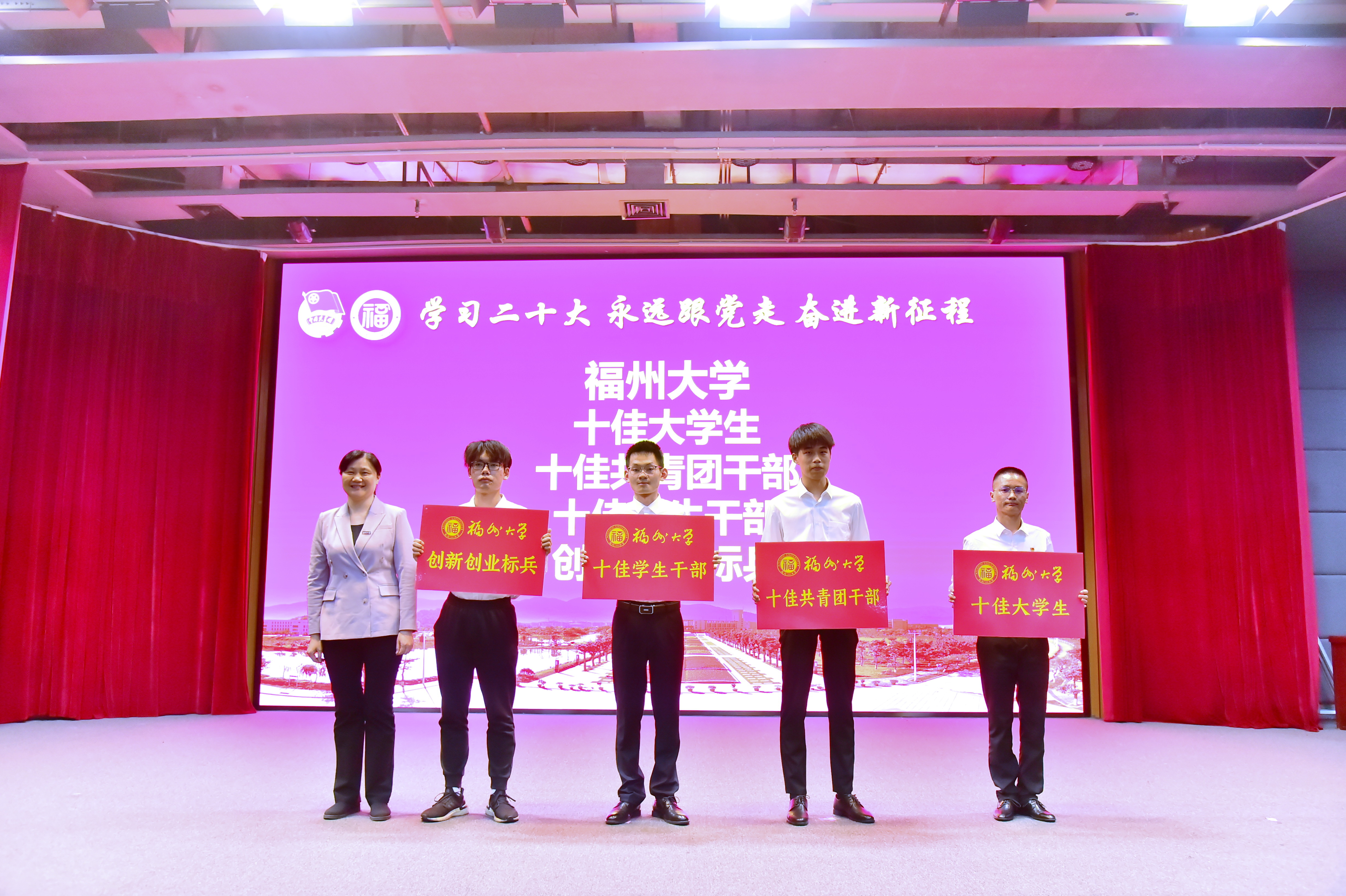 院党委副书记(主持工作)叶青为福州大学十佳大学生、十佳共青团干部、十佳学生干部、创新创业标兵颁奖